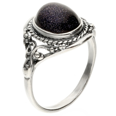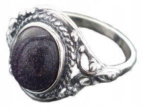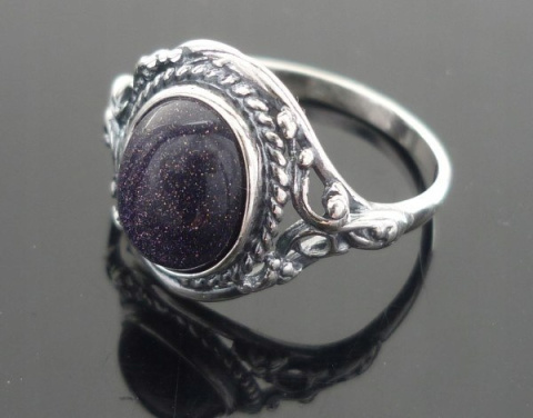 Przepiękny, stylizowany pierścionek retro, wykonany z oksydowanego srebra próby 925. Wysadzany nocą Kairu.